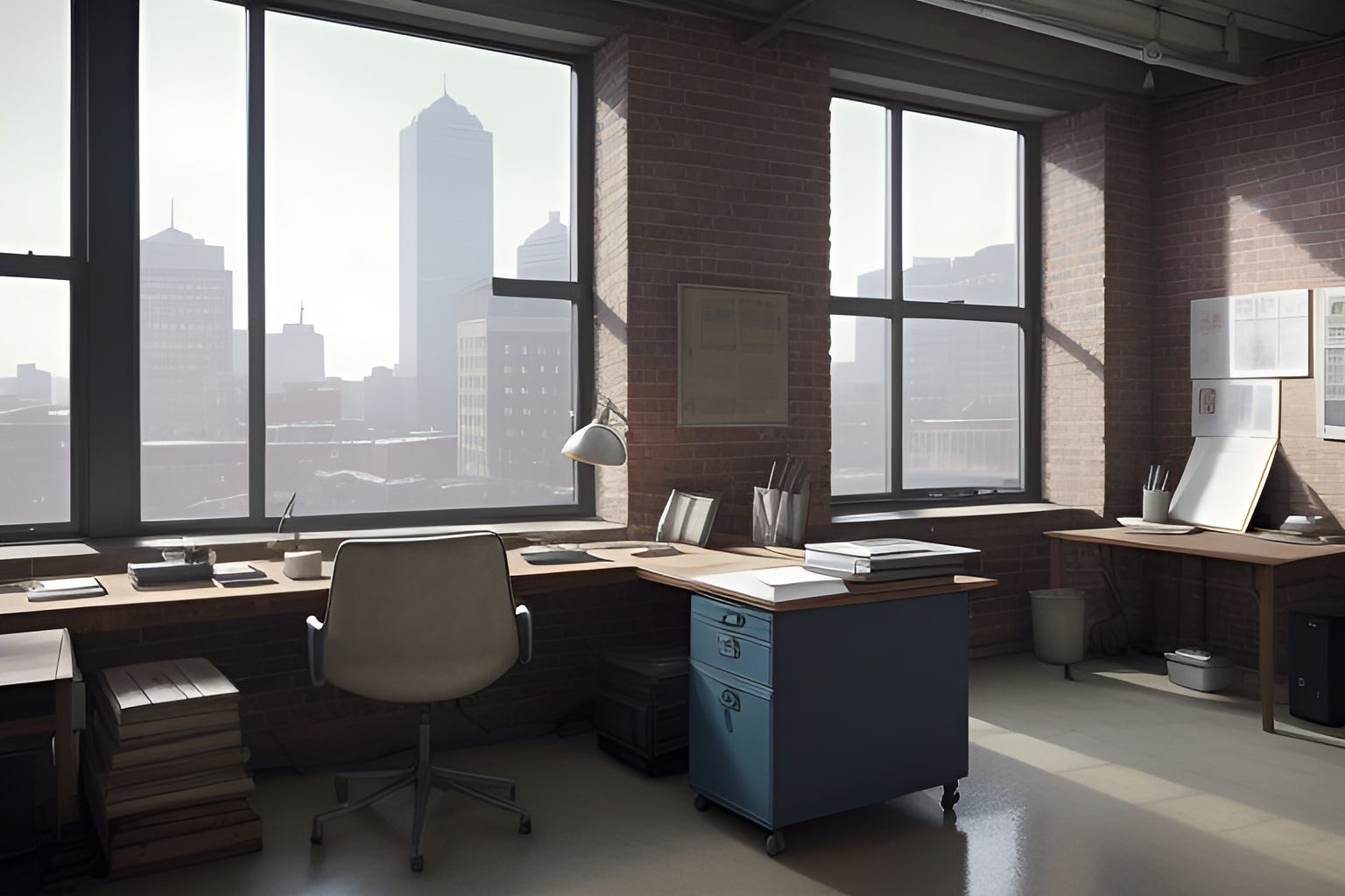 Architecture: The firm's office could be located in a converted textile mill in the Fort Point Channel area, with exposed brick walls and large, arched windows. This industrial chic setting contrasts sharply with the sleek new CAD workstations.