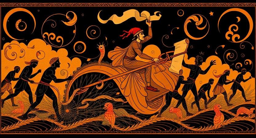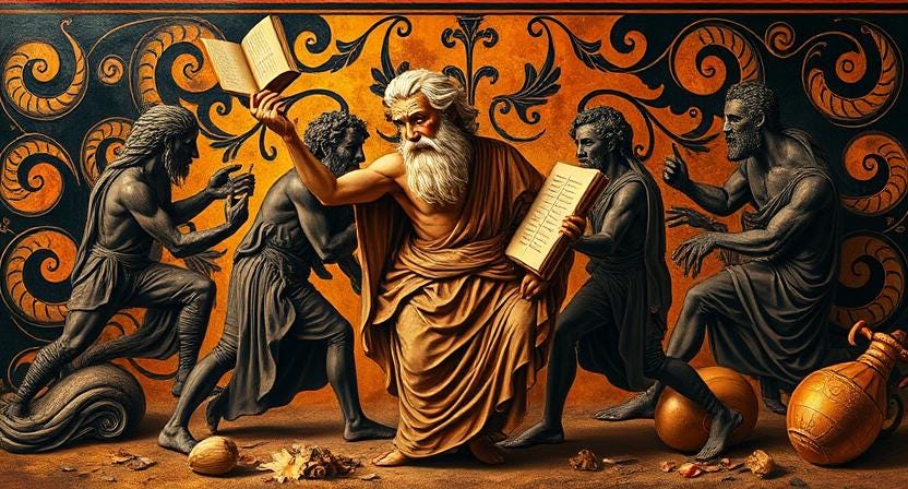 The folly of pretension: Margites embodies the boaster who confuses jargon for real skill.