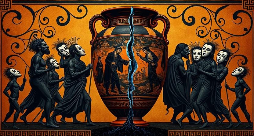 The verse itself blended dactylic hexameter with sudden bursts of iambic trimeter, a meter shift used for punchlines or ironic asides. This metric mixture heightened the comic impact by treating mundane follies with the gravitas usually reserved for divine exploits.